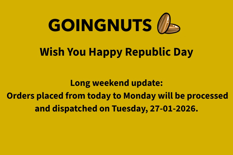 GoingNuts is passion for nuts in a nutshell! Our team wholeheartedly strives to bring the finest quality nuts to your doorstep and a lot of effort goes into ensuring this. From procuring the finest quality picks from across the world to packaging it in a perfect way to impress our elite customers – everything is done with a whole lot of love!