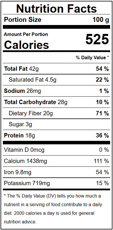 • Good source of essential minerals like calcium, magnesium, manganese and iron — supporting bone, blood and metabolic health.