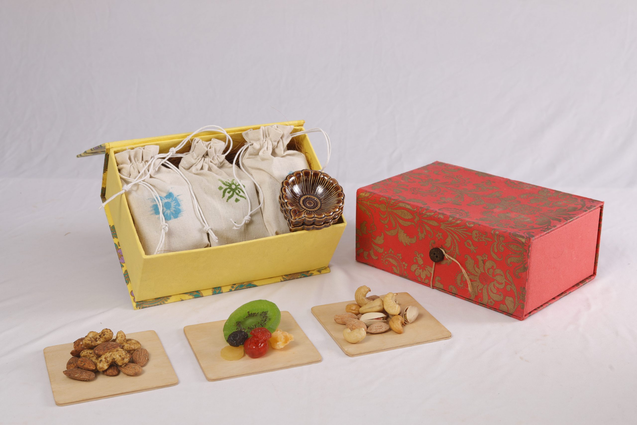 The Nutty Box, is made with Reusable Ethnic gift boxes made with 100% recycled handmade paper.